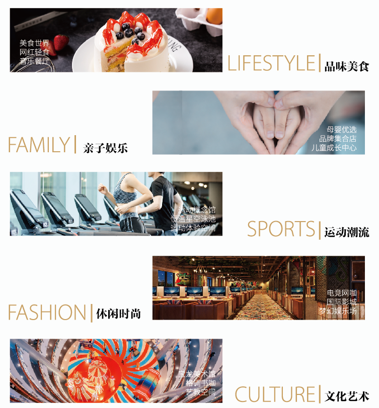 建面约93000㎡购物中心+建面约27000㎡文化艺术街,涵盖时尚购物、品味美食、文化艺术、儿童成长、运动休闲、娱乐体验、生活服务等七大主题业态,极大地满足了市民日常需求,为人们带去更丰富更多元的都市生活。