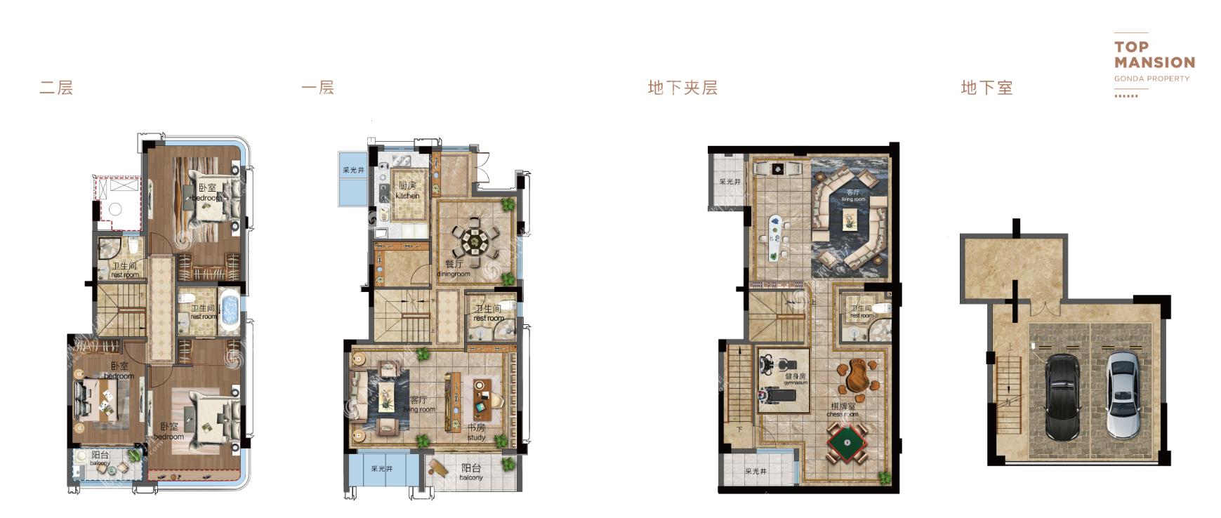 三层空间带阳光地下室,奢华尺度体验非凡人生;一层入户玄关尽显世家名门礼仪,宽景阳台盛放诗意生活;二层主卧大套房,双卧朝南,带飘窗或景观阳台,收纳微风阳光;地下夹层打造私享天地,满足家庭多元化需求;地下室可安放两辆爱车,左右有位,泊车省时省心。